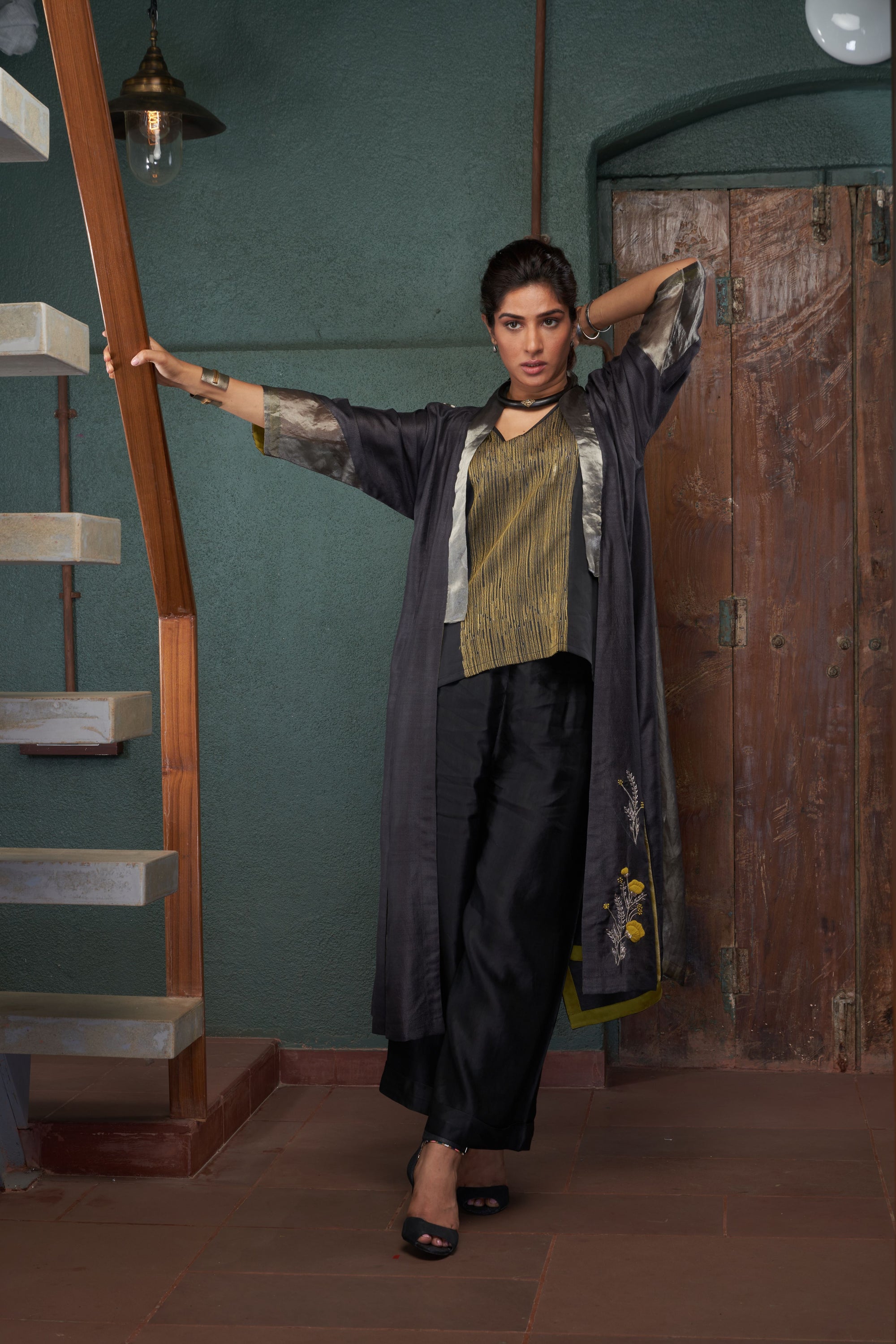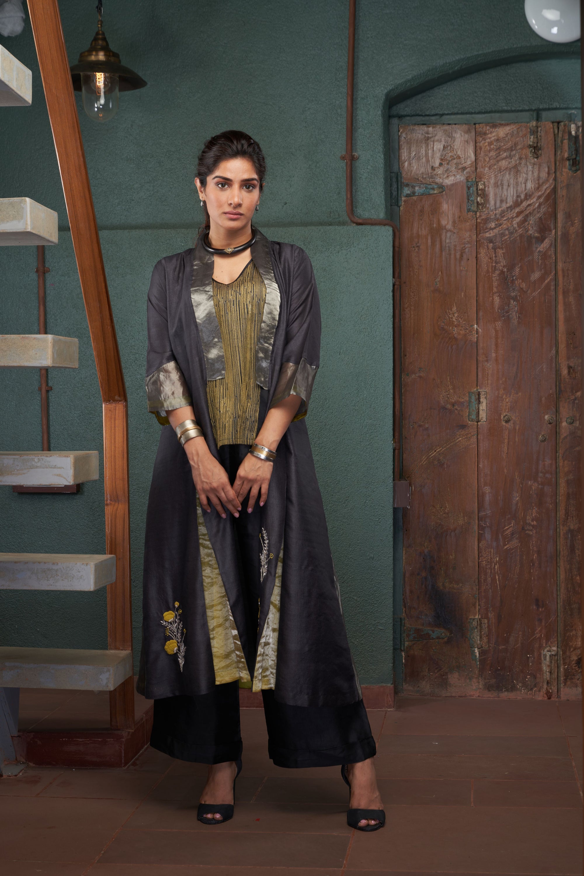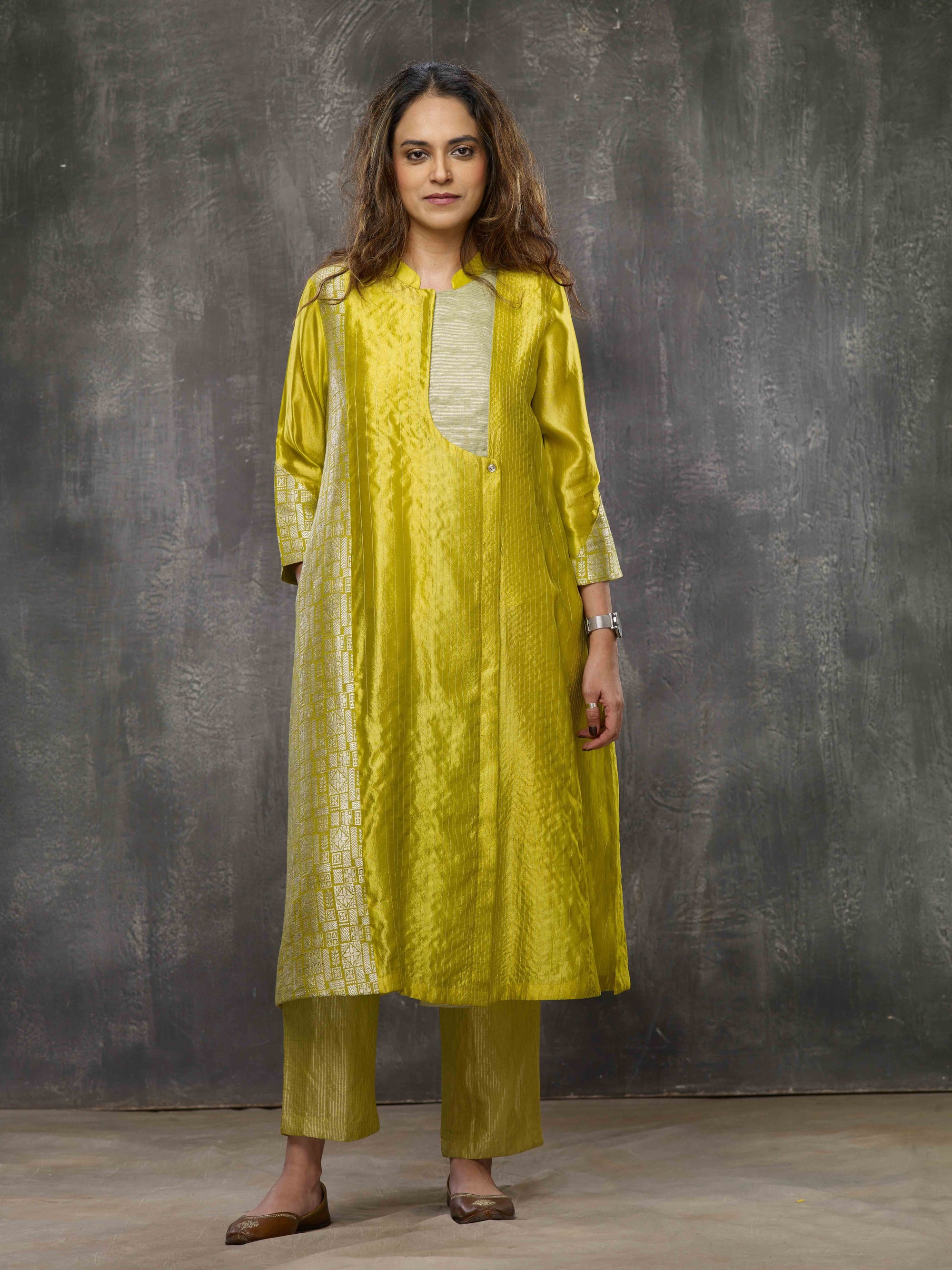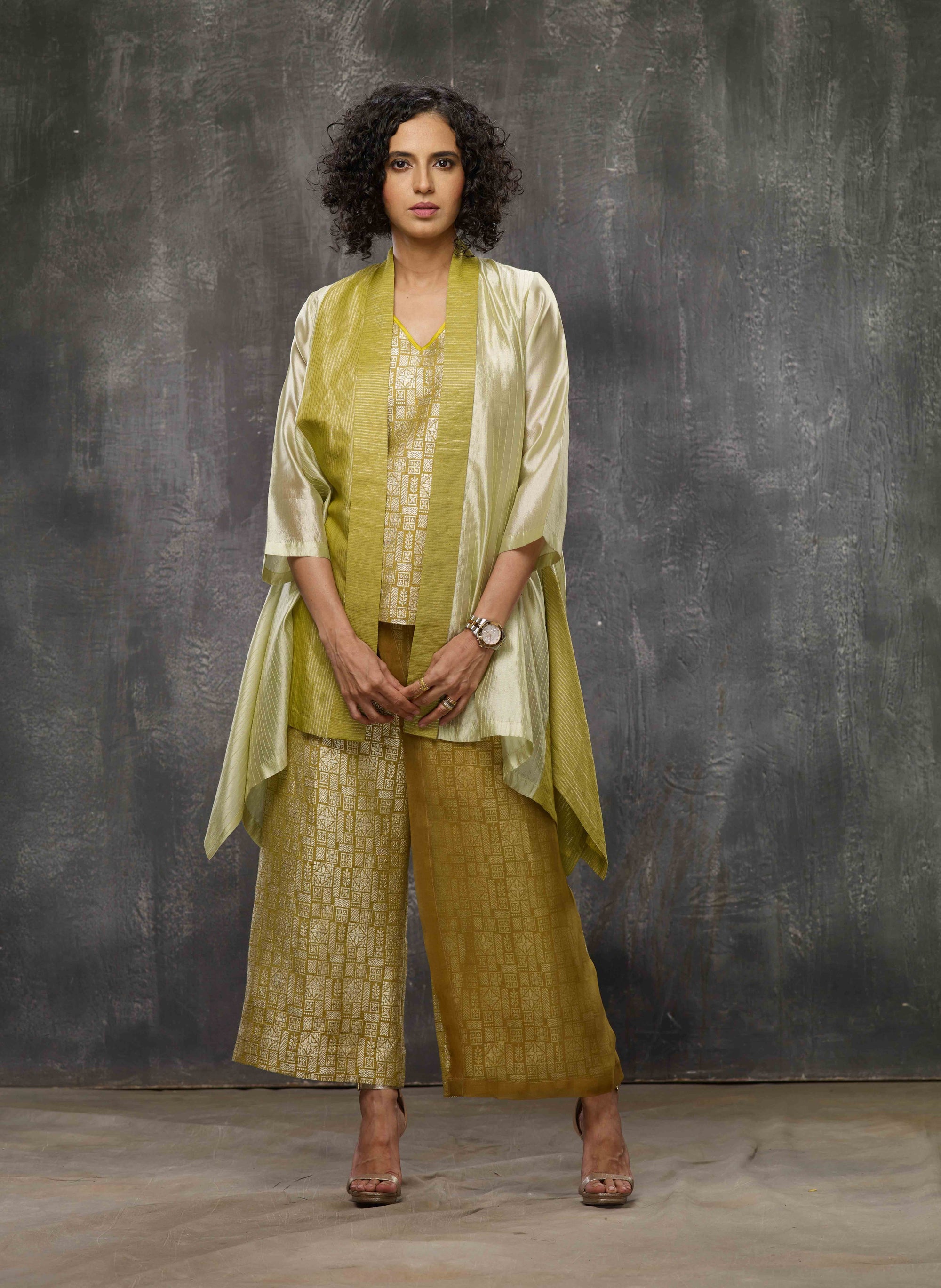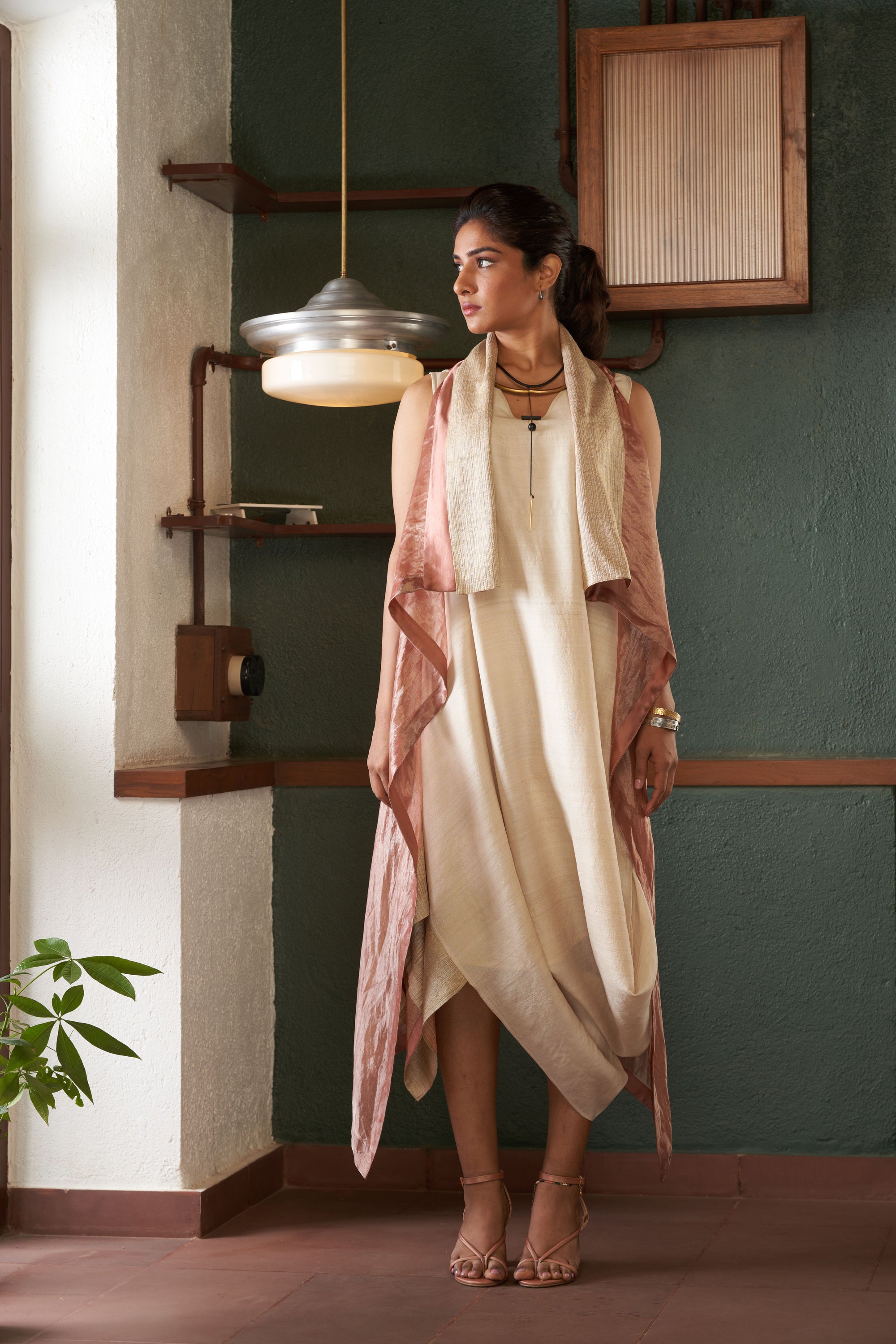Rose Pink Zari And Tussar Khadi Jacket Set