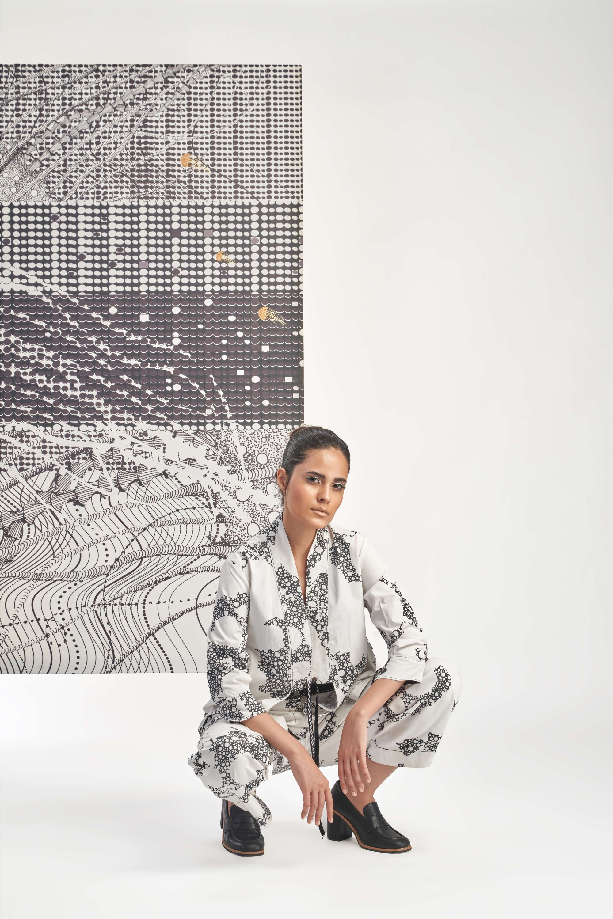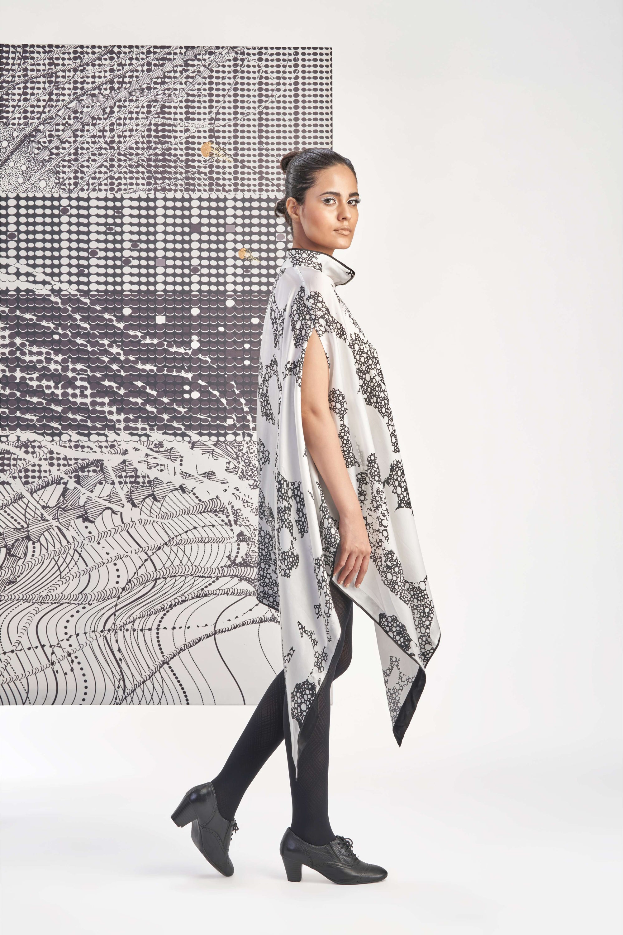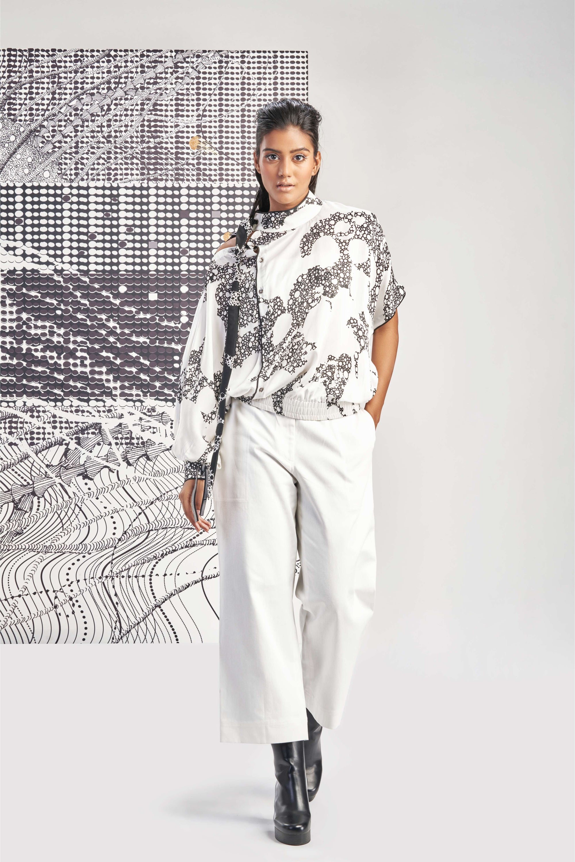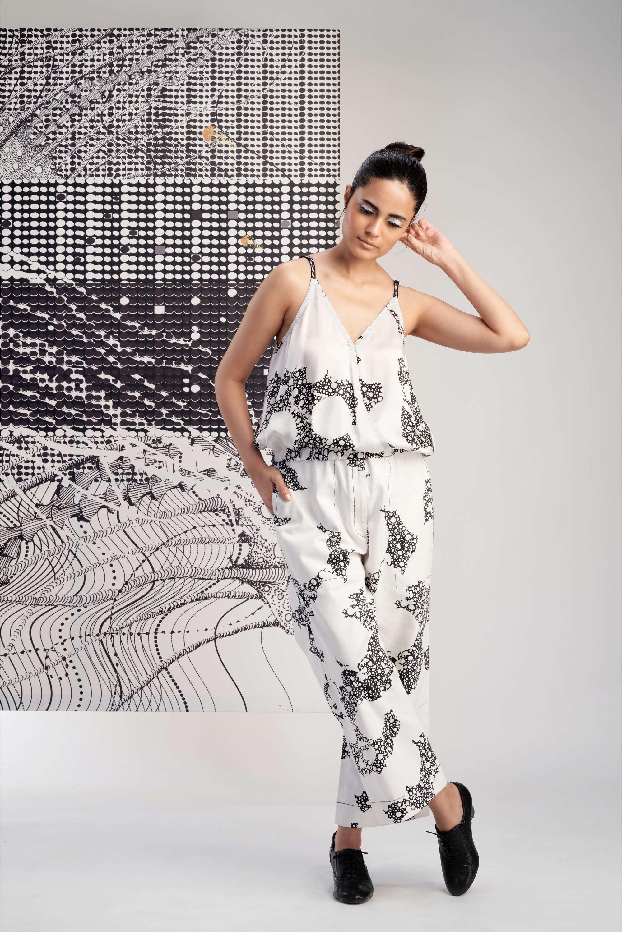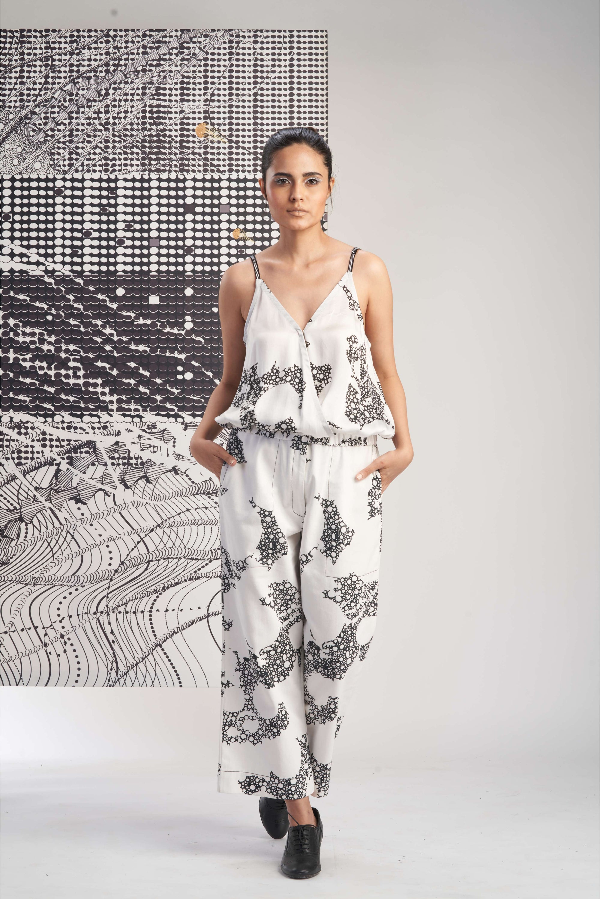 Black- Sleeveless Printed Pleated Top