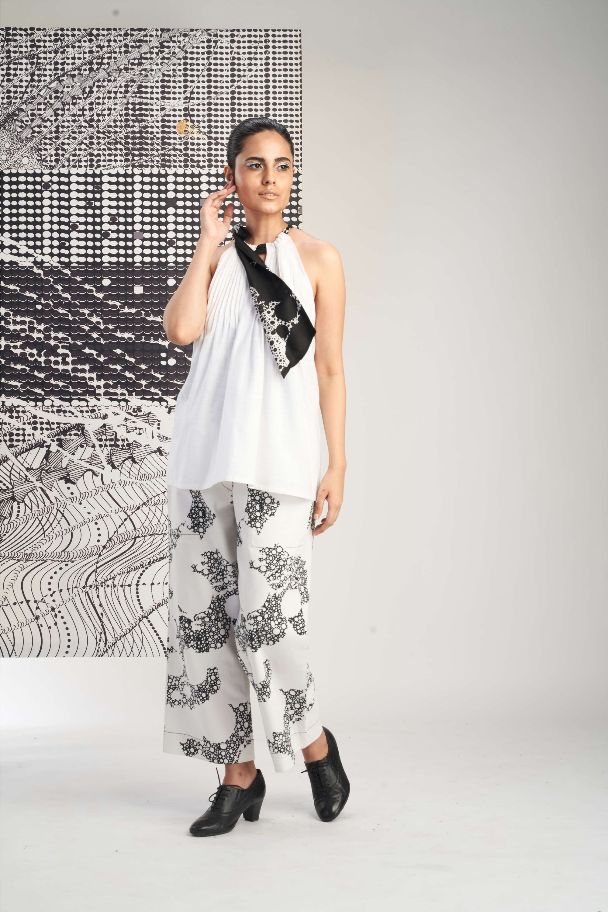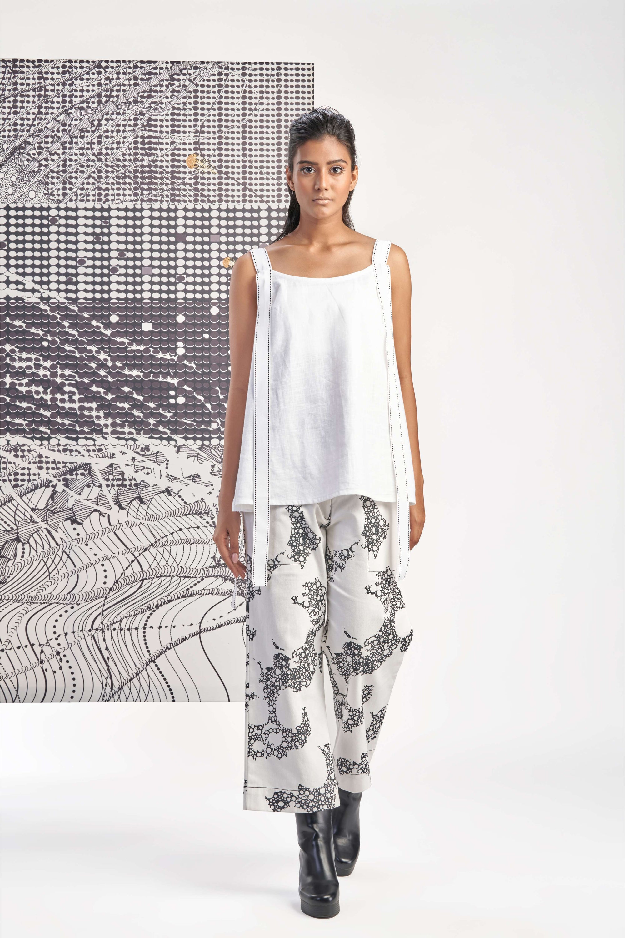 White- Sleeveless Printed Pleated Top