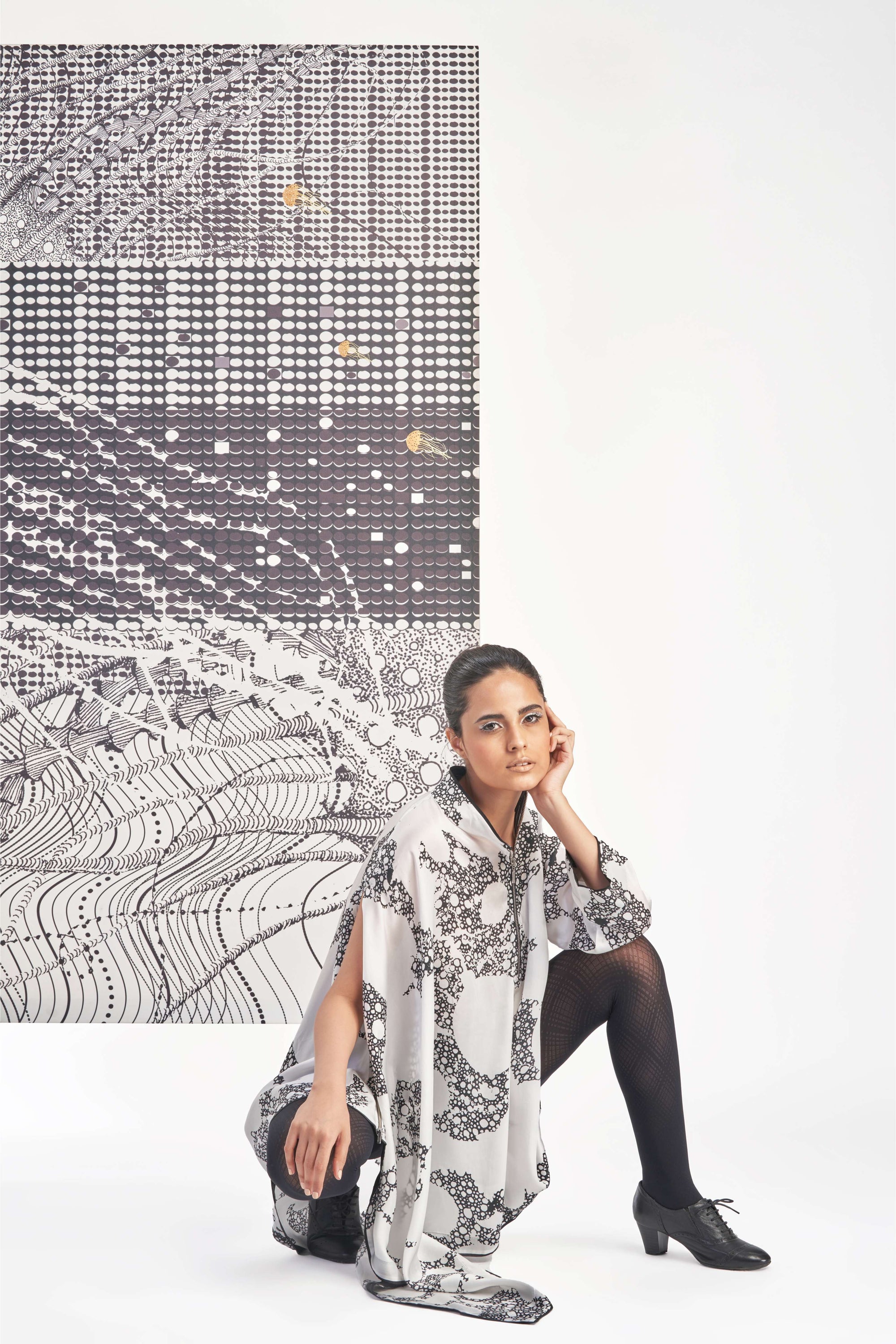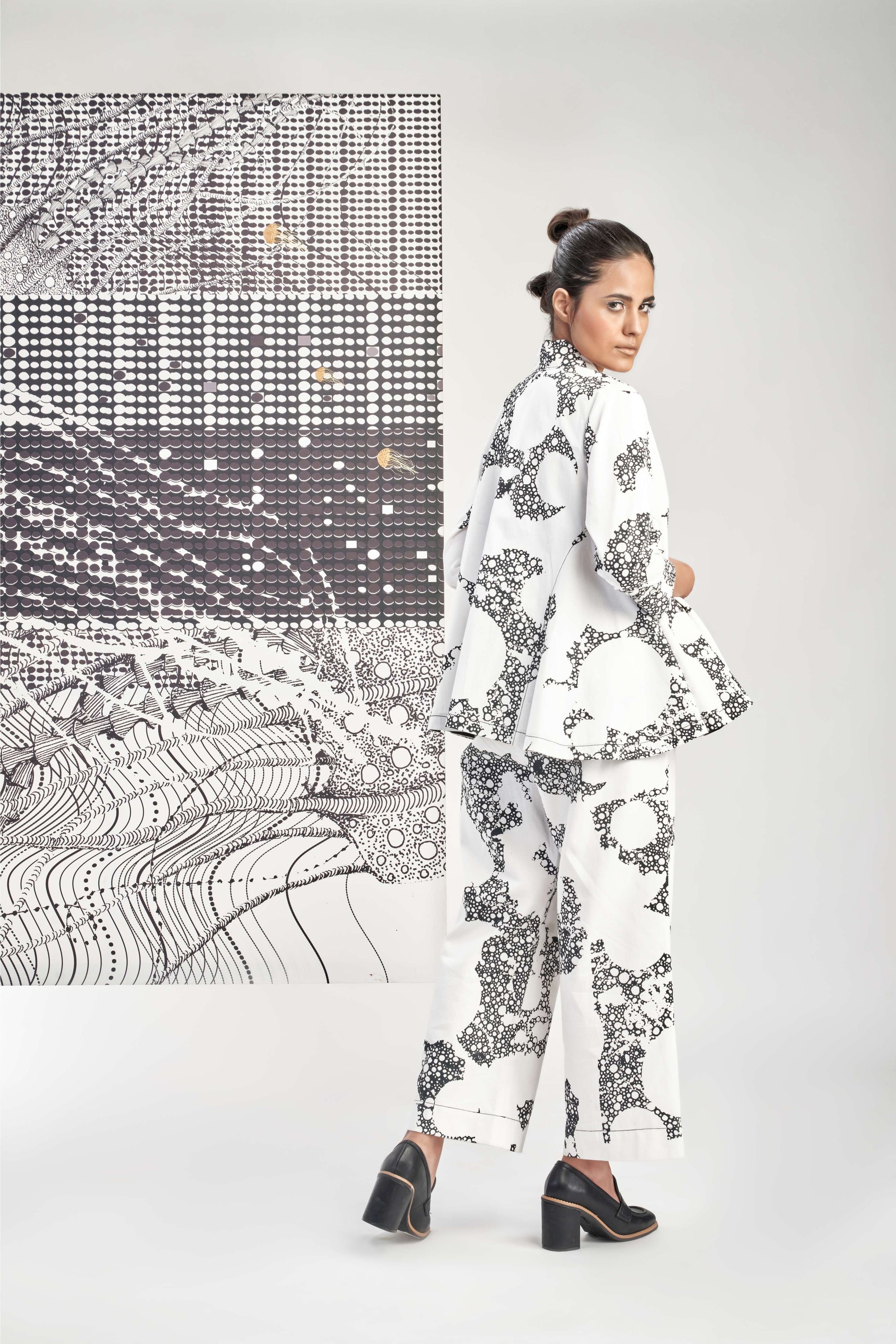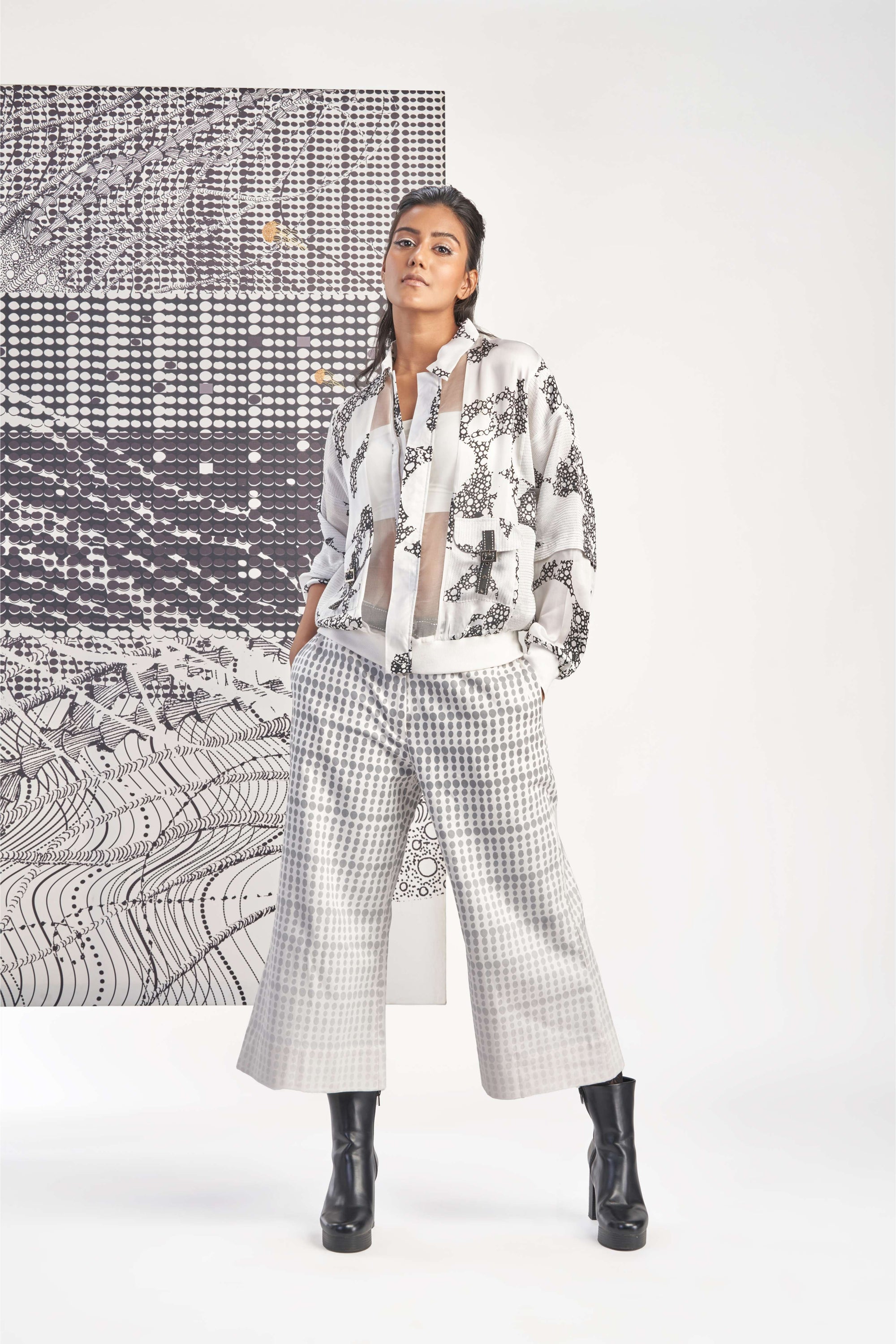 Black- Gradation Print Culotte Pants