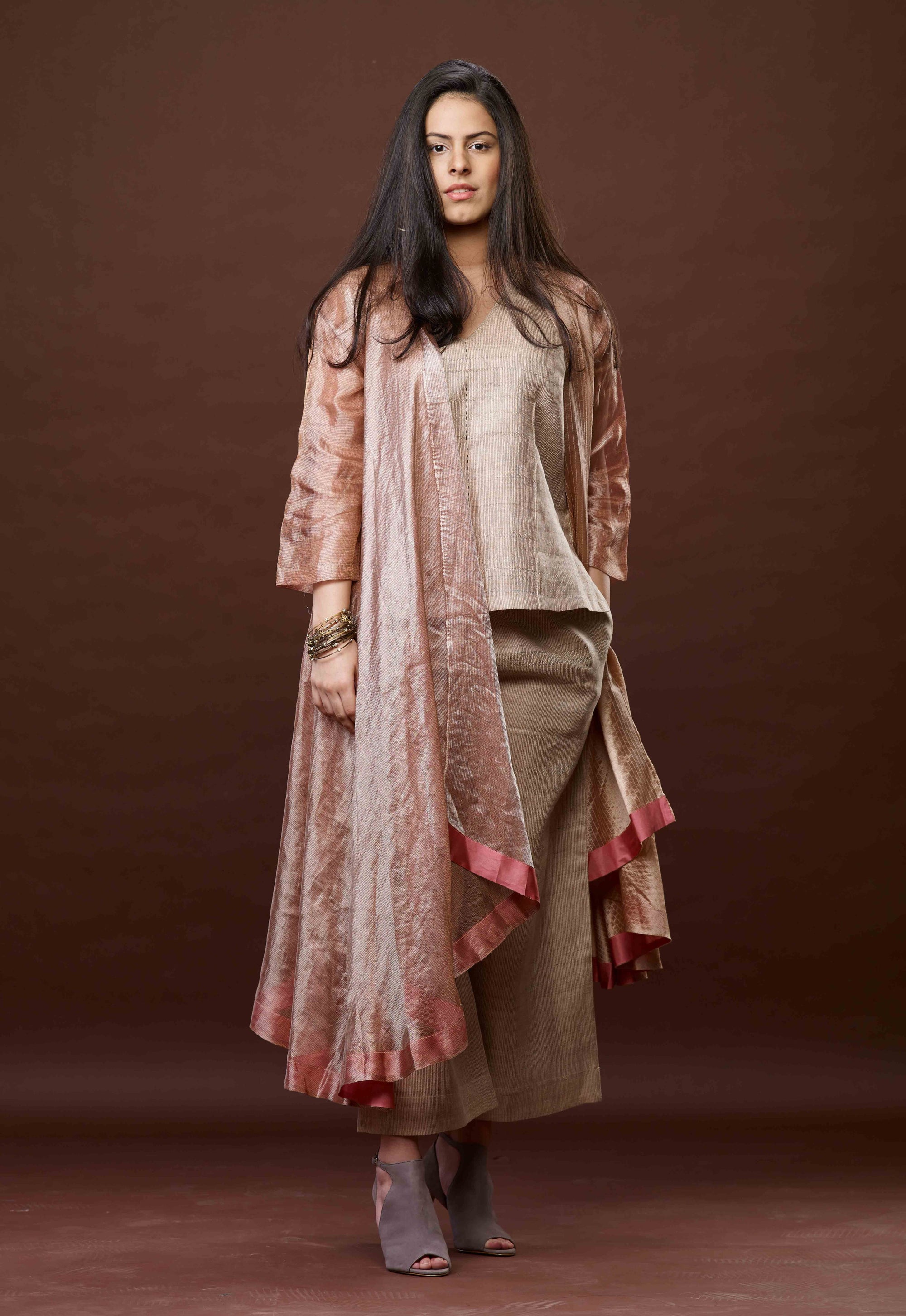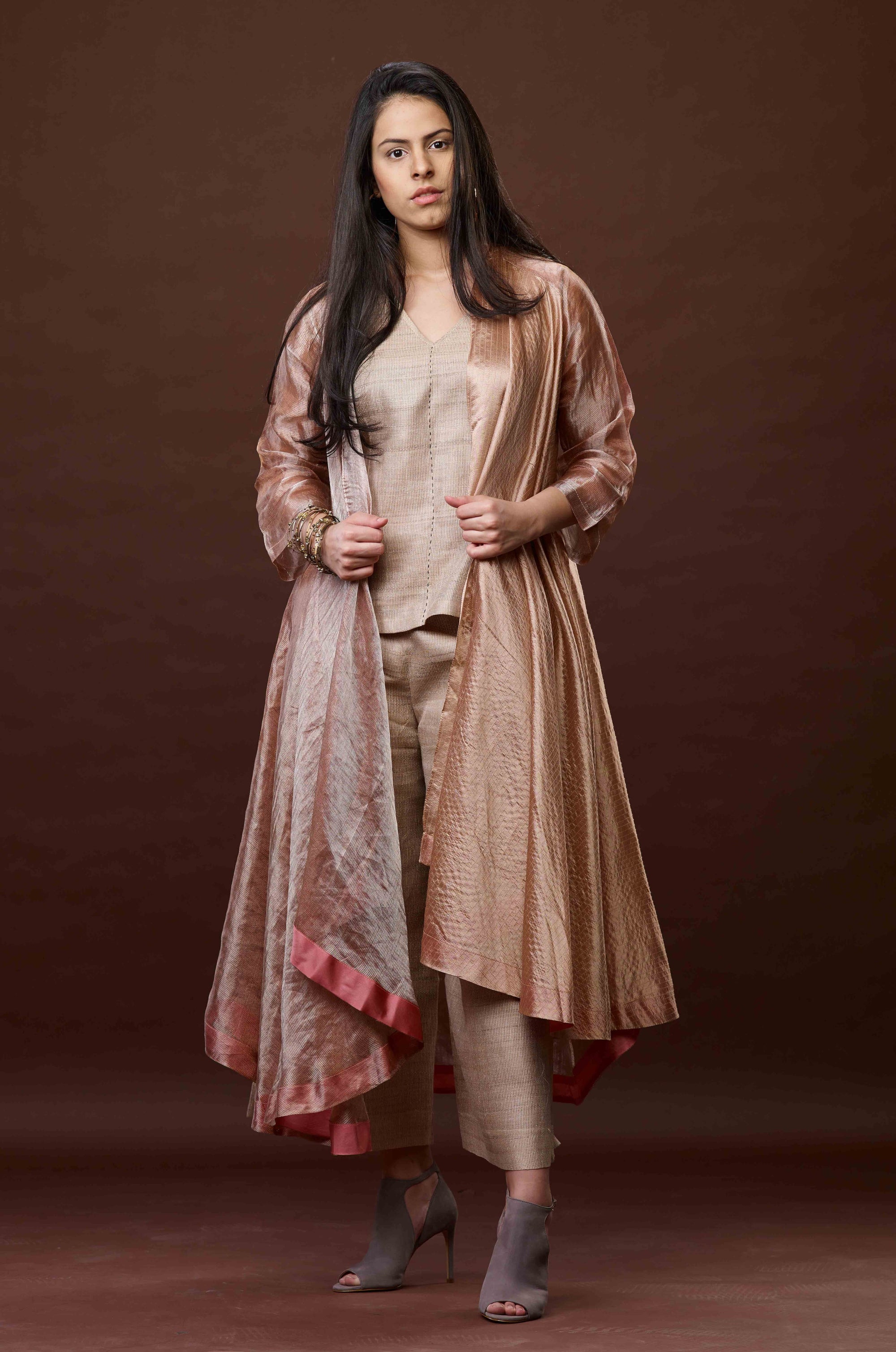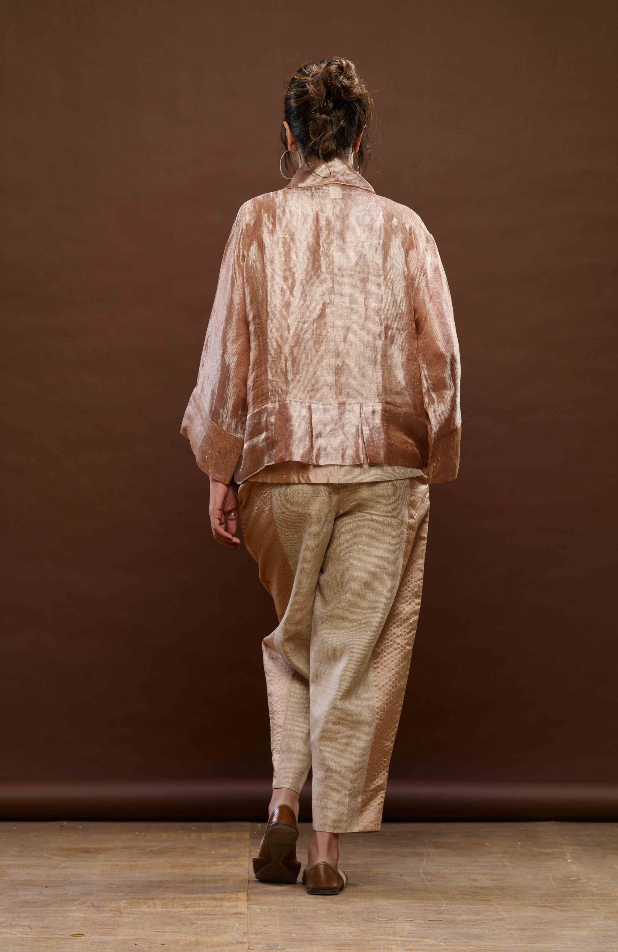 Rose Pink Zari And Tussar Khadi Jacket Set