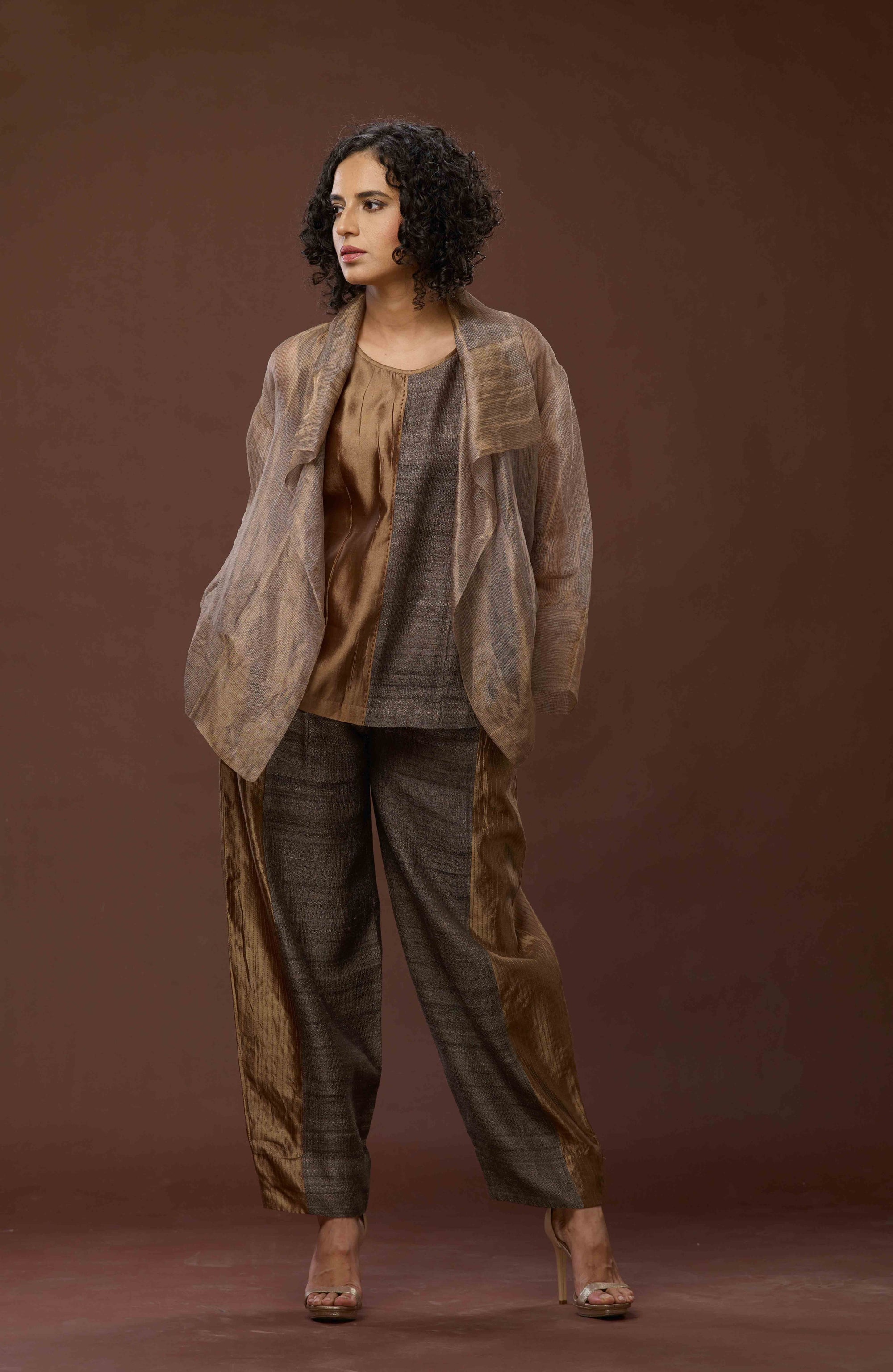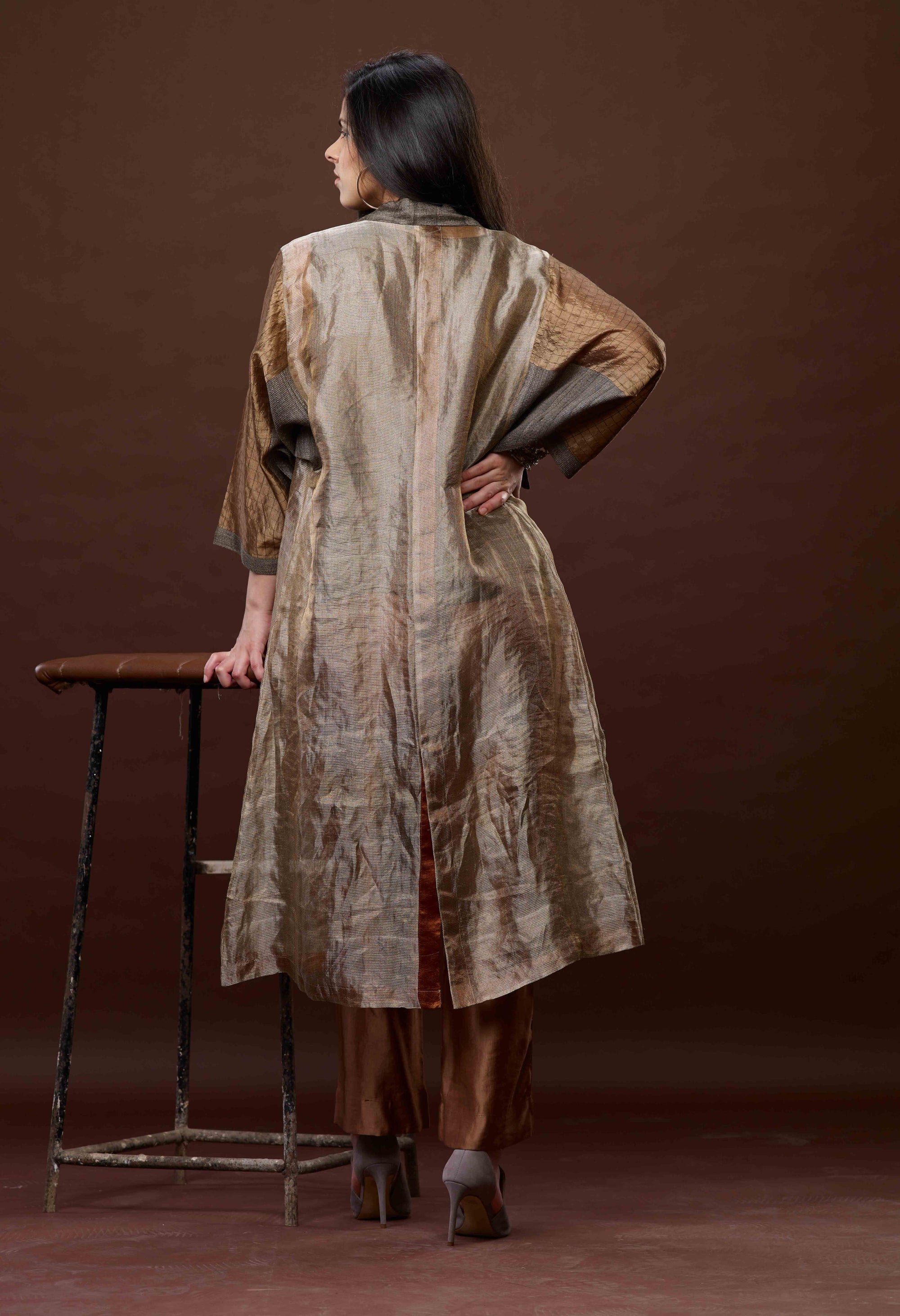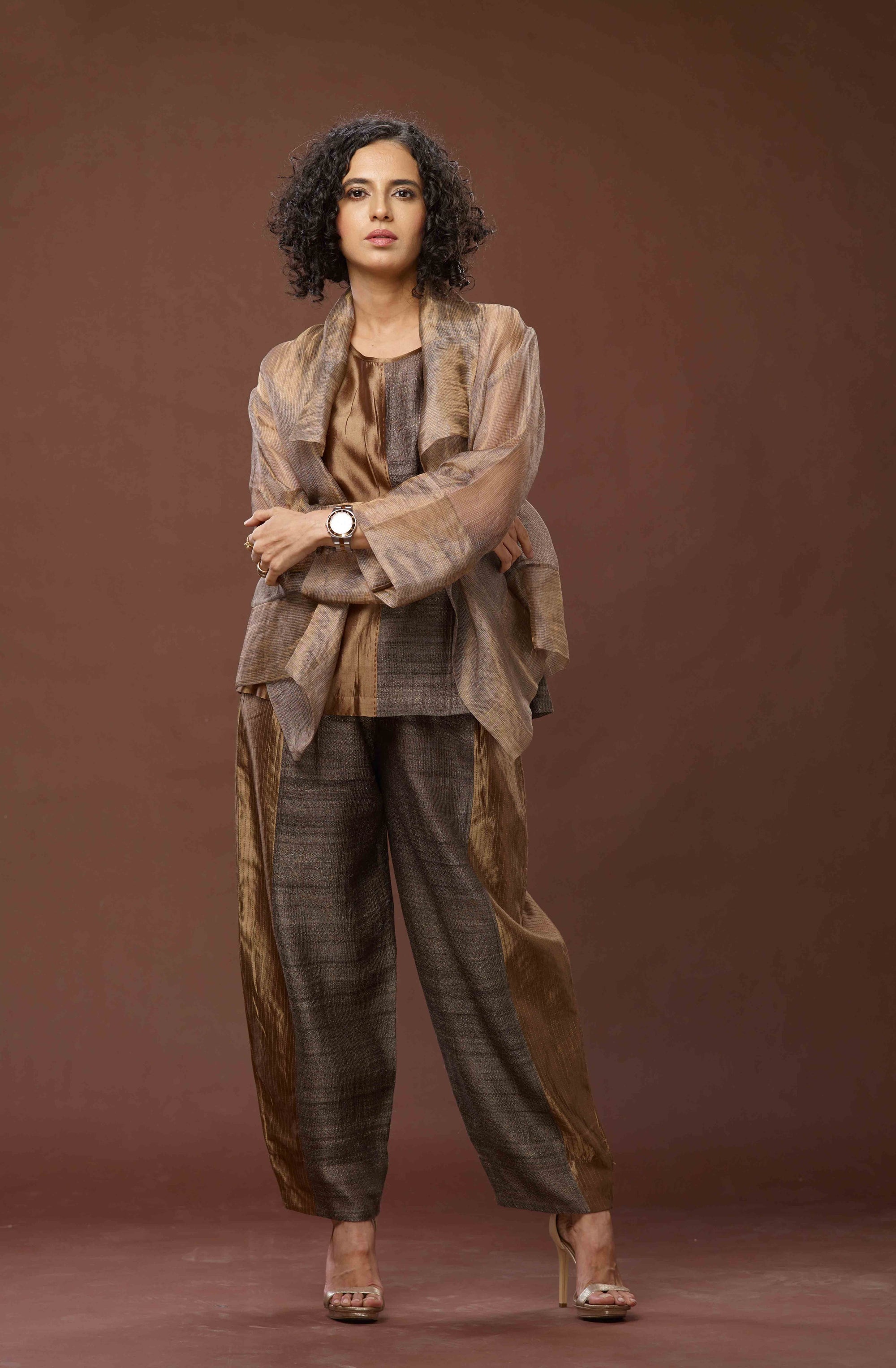 Rose Pink Zari And Tussar Khadi Jacket Set